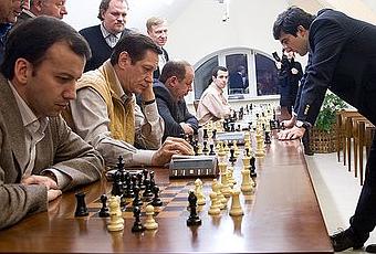 Vladimir Kramnik lors d'une simultanée © Zhukov Dvorkovich