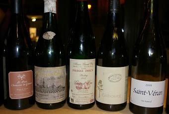 - Saint-Véran 2008, domaine des Côtes de la Molière : une bouteille coup de cœur ce printemps, qu'il fallait partager avec le plus grand nombre. Premier nez sur la pomme verte, puis apparaissent des notes de grande maturité, avec de l'orange amère, et une belle minéralité. La bouche est cristalline, d'une grande pureté, avec un caractère acidulé marqué en finale, d'une grande fraicheur. Confirmation d'une très beau vin, faisant l'unanimité des dégustateurs présents. Dire que la commission d'agrément a encore du mal à s'en remettre !