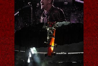 L'écran circulaire se détend et s'abaisse pour bientôt arriver au niveau du groupe. On n'échappera pas aux discours pour la planète et sur l'écologie, pour la défense de Aung San Suu Kyi (avec même des gens défilant avec son masque sur la scène circulaire), un discours en semi direct avec les six astronautes dans l' espace retranscrit sur les écrans dans un français approximatif, et un hommage à Michael Jackson, Bono chantant « Billie jean » et « Don't stop till you get enough »... Je me suis cru encore dans l'espace à ce moment là. A t-on besoin de ces discours dans un concert de rock ?? Même si bien sûr on sait qu’avec Bono, on n' y échappera pas...