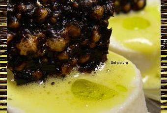 Au dernier moment,donner un coup de fouet électrique a l'émulsion et en déposer une cuillère sur la Panna Cotta