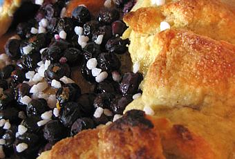 Couvrir les pêches de bleuets et rebattre les côtés de la pâte vers le centre de la galette en faisant coller ensemble les godets de pâtes qui se formeront sur le pourtour.