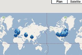 TwtMaps est ce qu’on appelle communément un mashup. Il est une association de Twitter et de Google Maps et permet de voir où se trouvent, dans le monde, vos followers. Tapez votre pseudo et hop la carte est générée. Vous avez des petits oiseaux qui apparaissent, chaque oiseau correspondant à un follower. En cliquant dessus, vous pouvez voir de qui il s’agit (pseudo) et ce qu’ils font (bio). Et bien sûr, vous savez quel lieu ils ont indiqué dans leur profil Twitter.