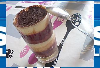 6° Pour le montage, tapisser le fond d'une verrine de miette de spéculos, puis rajouter deux belles cuillères à soupe du coulis de cerise que vous avez obtenu puis deux cuillères à soupe de la préparation au yaourt. Renouveller l'opération encore une autre fois avant de placer le tout au frais pendant deux heures au minimum.