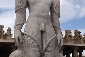 Bahubali était entré en guerre contre son frère qui s’était accaparé son territoire, en violation des volontés de leur père. Une fois la victoire remportée, Bahubali renonça cependant aux biens terrestres. Il demeura nu et immobile, méditant si profondément que les plantes grimpantes finirent par le recouvrir.