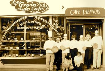 Après 4 mois de travaux le 17 juillet 2008 vous avez pu découvrir nos pâtisseries, notre café et tout ce qui fait l’âme du café. Mais le 37 avenue Mac Mahon n’a pas toujours été comme il est aujourd’hui. À l’origine, le café s’appelait grain de café et la déco était très différente! Aujourd’hui la décoration a changé mais les palmiers sont restés.