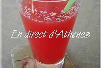 Après avoir fait la karpouzopita, je me suis retrouvée avec une belle quantité de jus de pastèque que j'ai d'abord conservé au frigo pour en faire un bon cocktail dont nous nous sommes régalés...