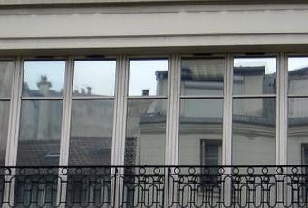Cette photo m'attire depuis quelques jours. Elle n'a rien d'exceptionnel, prise dans la rue Beaubourg lors de mon périple-marathon parisien... je voulais faire ressortir les reflets à la manière de certains photographes mais je n'ai pas leur talent... et grâce à ce petit coin de ciel bleu plein de symboles, je ne l'ai pas jetée.Un coin de soleil bleu