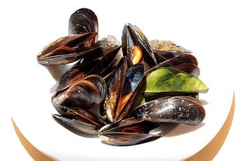 (Photo LOF - Moules, feuille de combava, basilic violet)