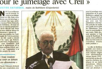 La solidarité avec la Palestine est un combat. Je l'ai expliqué à plusieurs reprises sur ce blog mais aussi dans dans les réunions de Creil Palestine, dans celles de la municipalité, au conseil municipal, on ne peut pas mettre dos à dos Israël et la Palestine. D'un côté il y a un occupant, de l'autre il y a un occupé. D'un côté sévit la domination coloniale, de l'autre un peuple souffre quotidiennement de cette domination. C'est le postulat sans lequel on ne peut prétendre engager une action de solidarité avec le peuple palestinien. Je l'ai dit et redit, rien ne sert de polémiquer. Ce qui compte c'est de servir la cause d'un peuple opprimé et d'agir pour la paix. Beaucoup de temps a été perdu en polémiques inutiles. Au Conseil municipal, les élus communistes ont refusé de participer à ces polémiques. Ils ont fait preuve de volonté unitaire en votant à la fois la délibération présentée par le maire et la motion présentée par l'opposition. Cette attitude a été très appréciée comme me l'ont dit de nombreux citoyens, dont certains sont loin d'être communistes. Car lorsqu'on veut un jumelage il n'est pas pensable de se présenter divisés, il faut montrer une volonté commune, montrer à nos frères palestiniens que nous sommes tous ensemble pour défendre leur juste cause. J'ai pour ma part fait appel à la responsabilité de chacun pour avancer dans la voie de la solidarité et de la coopération sans juger aucun de mes collègues élus en partant du principe que chacun était un partisan et artisan de la paix. Aujourd'hui on ne peut que regretter que le temps perdu par ces dissensions inutiles ait conduit à ce que nos amis palestiniens s'interrogent sur l'opportunité d'un jumelage avec notre ville. Tout en respectant l'opinion d'autrui, j' ai dit également qu'il n'était pas dans les circonstances actuelles envisageable de jumeler notre ville avec une ville d'Israël si nous voulions aboutir à un jumelage avec une ville palestinienne et un camp de réfugiés : je crois que les faits m'ont donné raison. Je publie ci-dessous l'interview du maire de Bethleem recueillie par le quotidien "Le Parisien" de ce samedi 11 juillet. Il faut continuer le combat, il faut ne jamais baisser les bras face aux difficultés. Avec les élus communistes nous continuerons d'agir pour rassembler les Creillois, dans leur diversité, pour réussir. L'urgence et la priorité est d'agir pour nous jumeler avec le camp de Qadura parce que les camps de réfugiés ont besoin de soutien politique et de coopération. Nous allons nous y consacrer, au delà des polémiques et nous y parviendrons !