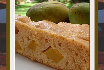 2. Ajouter le sucre, le chocolat blanc fondu et la mangue découpée en dés.
