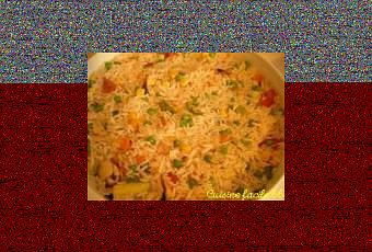 Salade de riz aux carottes, petits pois, courgette, maïs, tomate, moules et crevettes.