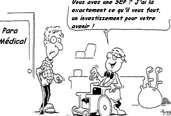 pharmacien. Pas le sympa, hein, mais sa caricature: imbu de lui-même, l'oeil sévère par-dessus ses lunettes monture années 50 en écaille, il vous jauge comme si vous étiez responsable de votre maladie/handicap. En fait, il vous évalue, soupèse ce qu'il va pouvoir tirer de vous. En plus de ce qui est prescrit par les médecins, il va vous recommander des produits d'épicerie (!), conscient que vos médocs ne vous guériront pas. A chaque passage chez lui, si vous êtes sclérosé en plaques, il frétillera d'excitation de vous voir tituber un peu plus que de coutume, gage pour lui du passage au stade "cannes". En prévision, il vous demandera votre couleur préférée et ô miracle, à votre visite suivante, des cannes pouvant vous convenir seront dans la vitrine, bien en vue, pour vous fidéliser!Quand les cannes ne suffiront plus, il secouera la tête d'un air compatissant, se frottant les mains au même moment, car le fauteuil qu'il vous a déjà mis de côté aura des chances d'être vendu!