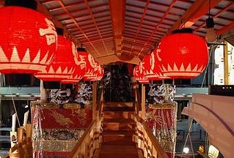 La facade de lanterne du Kikusuihoko, le hoko de la fleur imperial (le chrysanteme)