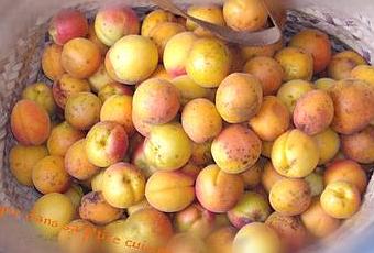 Ce panier donne un petit aperçu de la récolte d'abricots de cette année dans le jardin de mes parents! Excepté que l'on doit multiplier par 10 cette quantité!