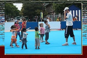 A l'occasion de Paris-Plage, les enfants (et les grands aussi) peuvent s'essayer à divers sports - dont la boxe.