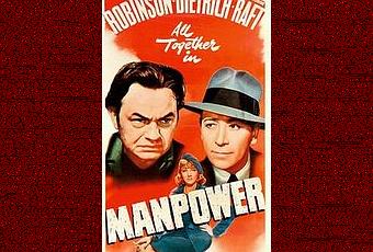 Dans Manpower, il y a power (et man). Il est question, en effet, d'une troupe de bonshommes dont le métier est de réparer des cables électiques, perchés en haut de pilones en feraille. A tous les coups, ça ne rate pas une seule fois, quelqu'un tombe ou se prend une décharge. Pas facile, la vie des power men. Alors pour oublier, c'est une autre forme d'énergie, plus anarchique, qui se déchaîne. Deux d'entre eux sont ivres en permanence et font toutes les idioties possibles, les autres rient gras, s'engueulent parfois, se battent souvent.Puis quand Marlene Dietrich débarque, c'est une autre forme de tension qui s'installe. Face à elle deux camarades, Edward G. Robinson, un petit trapu un peu pataud, et George Raft, un Humphrey Bogart trop lisse, presque efféminé. Cette polarité définira le reste de l'intrigue, le premier se marriant avec la femme convoitée, demi-mondaine en quête d'enbourgeoisement, et le second cultivant ses sentiments avec des bonnes charges d'amour vache. Le visage décharné de Dietrich, ses yeux et son allure de femme fatale, savent très bien maintenir la tension.