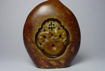 A l'intérieur de cette pêche est sculpte un couple de Pi Xiu sur Bi Chinois, le même que celui des pendentifs en jade, avec un de mes maître Feng Shui on l'adore et on prends les plus beaux à chaque nouvel arrivage.