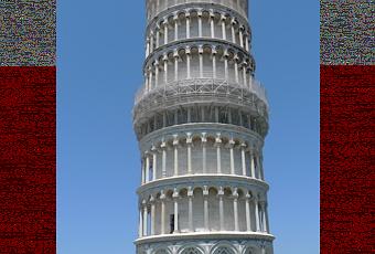 Photos : La tour de Pise, avant X Noir ; la tour de Pise, après X Noir. Pour les lasagnes, même combat : ça file tout droit ou tout de travers dans la machine infernale. Un travail d’orfèvre.