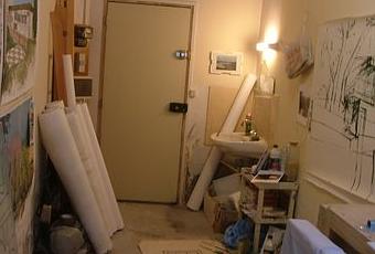 Le travail garde sans doute un peu la trace des conditions dans lesquelles il s’est fait, il enregistre les moments, les fréquentations, les lectures. Et les tableaux deviennent les jalons, les témoins de l’histoire que l’on trace. Je me souviens très bien du petit atelier que j’occupais la dernière année à Paris dans une cave de la rue des Marronniers. Très exactement 2mètres de large et 5 mètres de long. Un petit lavabo entartré, une fenêtre aveugle. Le sol brut qui ressemblait à de la terre battue, les couloirs infinis à longer pour l’atteindre. Et la cave à côté de la mienne avec nom et paillasson parce que quelqu’un y habitait. L’angoisse le soir dans ce labyrinthe glauque craignant que la minuterie me laisse à mi-chemin sans lumière à devoir tâter les murs humides pour rejoindre la sortie. Les numéros sur les portes rappelant les indications chiffrées sur les caisses de matériel militaire, des caves à n’en plus finir, moi la 22. L’odeur de la poussière et de la peinture passée la porte. Les transports des tableaux pour aller accrocher les expos. Je m’étais trouvé une planche avec des roulettes pour charger deux ou trois tableaux à travers les couloirs. Fallait manœuvrer serré. J’y ai préparé entièrement l’exposition papiers d’atelier en 2007. J’écoutais la série de François Bon sur Led Zeppelin et l’imaginais enregistrant une rue derrière dans les étages de la maison de la radio. Ces histoires se racontant d’une boite à une autre, isolés et reliés. Je préparais cette année là l’agrégation sur l’autre rive et il n’y avait qu’à passer le pont pour aller y suivre les cours. Je rentrais le soir en moto par les quais jusqu’à Montparnasse. J’avalais ma liberté le long du fleuve en dépassant les Invalides et la dame de fer. En tout je n’ai réalisé que deux toiles dans cette cave sans recul, les paysages 35 et 36. Deux vues d’un même lieu sur la côte en contrejour. Je retrouve quelques photos prises à l’époque avec ce tableau intermédiaire que le 36 à recouvert. Une percée dans les branches sur la trame stricte et délicate d’un immeuble. Fouillant d’autres photos je m’aperçois que dessous encore avait débuté tout autre chose : la tombe de Le Corbusier. L’histoire se construit ainsi, avec des morceaux choisis et des recouvrements. On vit comme on raconte des histoires.