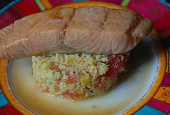 taboulé safrané avec du pamplemousse et une sauce à l'orange... Un délice !