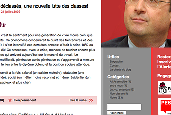 Le porte parole du PS, Benoit Hamon a fait son blog avec une adresse Européenne http://www.benoithamon.eu (celui qui avait peur de ne pas être élu et de partir a réussi à trouver un job !). Sur son blog, vidéos de ses interventions dans les médias et réflexions.