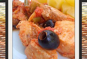 2. Ajouter ensuite le vin, laisser évaporer un peu, puis la tomate, les olives, le piment et le basilic. Cuire 30 minutes à feu doux.