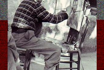 Cette photo du peintre n'est qu'une partie d'un cliché appartenant à une famille bien connue du Puy Notre Dame qui lui a très souvent fourni le gîte et le couvert. Elle lui a souvent acheté des toiles afin qu'il puisse subvenir aux besoins de sa famille. On demanda un jour au peintre, qui était de passage, de réaliser le portrait d'une enfant faisant partie de cette même famille. C'est cette scène qui est présentée avec l'agrément du peintre pour laquelle cette famille avait beaucoup de tendresse.C'est bien grâce à cette photo inédite que fut réalisée l'affiche ci-dessous de l'association.