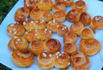 Mélanger ensemble le beurre mou avec le sucre, les œufs, le lait, la farine et la levure. Ajouter le zeste et la vanille. Former des boudins de 1cm de diamètre. Les enrouler en faisant des formes comme sur la photo. Dorer au jaune d'œuf. Saupoudrer de sucre perlé. Faire cuire 25 minutes à 180°C.
