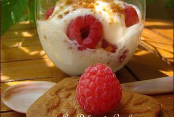 Spéculos, framboises et espuma au chocolat blanc composent ce dessert délicieux!