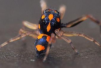 Une petite saltique d'à peine 5mm m'observe de ses yeux derrière la tête.
