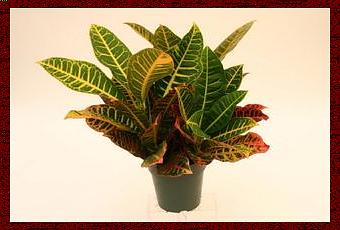 Peut être connaissez vous le Croton ou Codiaeum. C'est une plante qui fut très vendue dans les années 80, mais qui n'est plus à la mode actuellement. Il faut dire que c'est une plante fragile, au moindre courant d'air il perd toutes ses feuilles et donc son attrait.