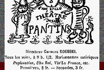 Ah charmant petit père Ubu je suis la dévote servante de votre ubuerie ; je n'ai jamais vu de mes propres yeux vu un homme aussi ubu. Vous êtes toujours frais et beau comme le Ver. Mais me contez par le menu l'histoire de vos avatars et comme vous voilà logé en ce superbe Palast des Pantins, 6, rue Ballu, près la rue Blanche, en Pantin Paris.
