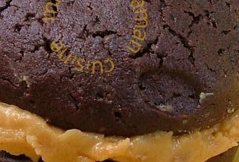 Préparez la farce : fouettez vigoureusement le beurre de cacahuètes et le sucre glace jusqu'à ce que l'ensemble soit onctueux. Déposez une couche généreuse de farce sur la face plate d'un cookie
