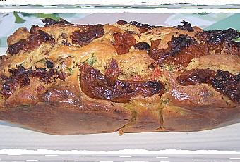 les les merguez, les chippos et le persil ciselé. Verser la pâte dans un moule à cake , déposez dessus les tomates confites et faire cuire 40min.