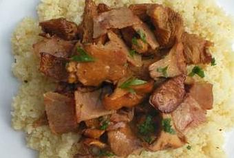 Répartir le couscous dans les assiettes et le garnir de girolles poêlées. Ne pas hésiter à l'arroser avec le jus de cuisson que les champignons ont rendu.