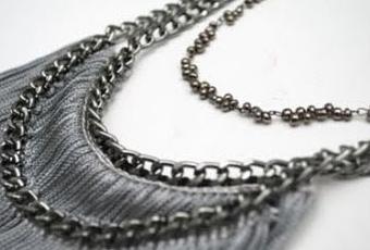 Présentant les chaines métalliques comme des cascades argentés.