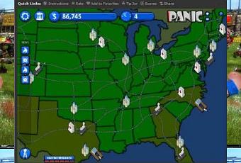 Dans le même registre, mais en inversant les rôles, Dark Realms Studios (qui a travaillé aussi sur Pandemic) vient de sortir une variation sur le thème des USA et de la grippe porcine. Ici vous êtes mandaté par le gouvernement américain pour arrêter la propagation de cette pandémie sur son territoire avant qu’il ne soit trop tard et que le pays ne sombre dans la panique. A nouveau, voyez la vidéo ci-jointe pour vous faire une idée du résultat. Si vous voulez faire la guerre à un virus, vous trouverez Pandemic American Swine sur cette page chez Kongregate.