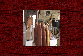 A l’arrière de sa maison, Monique Riond dispose de plusieurs petits bâtiments. Elle y a installé ses fours de sculpteur céramiste, son atelier et son espace d’exposition (c’est ce dernier sur lequel je voudrais attirer votre attention).
