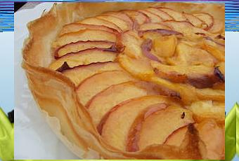 Déposez les lamelles de pèches à la surface des feuilles de brick.