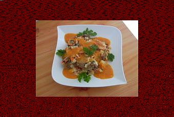 * Faites revenir sans coloration les batonner de crabe préalablement ciselés et les crevettes