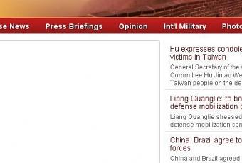 Le ministère chinois de la défense a ouvert aujourd'hui, pour la première fois, un site internet, avec une version anglaise. Le ministère explique que le site, actuellement en phase de test, est destiné "à donner au monde extérieur une meilleure perception de la politique de défense de la Chine" et promouvoir la modernisation de l'armée.