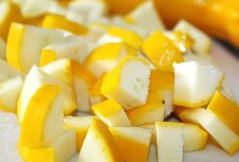 La veille, couper les courgettes en petits dés, ajouter le reste des ingrédients et faire macérer pendant une nuit.