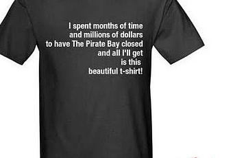 La justice suédoise à enfin réussit à faire déconnecter The Pirate Bay (mais pas pour bien longtemps). Les membres créateurs du site torrent, bien qu'ils soient souvent provocateurs et irrespectueux envers leurs détracteurs, ont tout de même pas mal d'humour. La preuve avec ce joli tee-shirt :