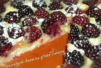 Etalez uniformément la garniture amandes sur le fond de la pâte et disposez les mûres dessus, bien les enfoncer.