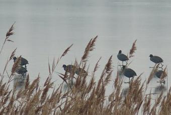 Il est 11 heures du matin, ce dimanche 11 janvier, quand ces oiseaux tentent la traversée de l'étang Saint Jean en Palmes à glace...