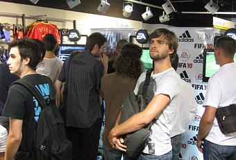 Il est 15h00, je suis de retour au bureau. J'ai été invité à l'avant première FIFA10 qui sortira le 1er octobre prochain. Longtemps j'ai cru que je n'aurais pas le temps d'y aller. Je termine d'une conférence téléphonique à 14h00, je prends mon appareil photo et mon pass Navigo, direction le ADIDAS Store sur la rue de Rivoli pour la présentation du jeu sensation chez Electronic Arts. Tout de même avec un goût amer car les inscritpions au tournoi organisé à cet honneur étaient closes à 13h00. Cela n'allait pas m'arrêter.