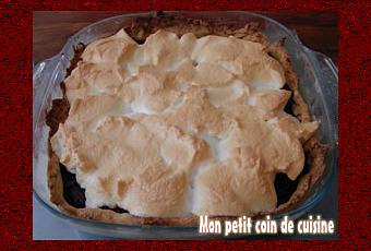 Pendant ce temps, montez les blancs en neige. A mi-chemin, ajoutez 80g de sucre et une pincée de sel. Répartissez la meringue sur la tarte à l'aide d'une cuillère à soupe. Faites dorer au four pendant 20 min (en surveillant).