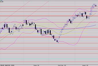 Le harami formé hier a bien joué son rôle, mais la bougie noire formée aujourd’hui indique bien qu'il ne s'agit pas d'un retournement de tendance comme je le laissais supposer hier soir.En effet, nous observons que cette petite bougie est dotée d'une ombre haute qui tente de rejoindre les récents plus hauts et qui confirme ainsi qu'il ne s'agit pas d'un départ baissier. Les acheteurs sont d'ailleurs restés bien présents pendant la majeure partie de la séance qui a évolué en territoire positif jusqu'à ce que l'ouverture de Wall Street vienne "troubler" la séance.