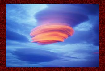 Altocumulus lenticularis plus communément appelé nuage lenticulaire. Le nuage se forme par vent fort en permanence du coté du vent pour se dissoudre de l’autre coté. Cette photo a été réalisée près du lac Kluane, Yukon, Canada. Il est tard, environ 23h et le nuage lenticulaire retiens les derniers rayons du soleil. Un phénomène assez unique.