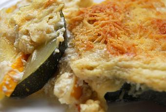 * Beurrez un plat à four et disposez 2 couches de courgette puis versez dessus la sauce de façon homogène.